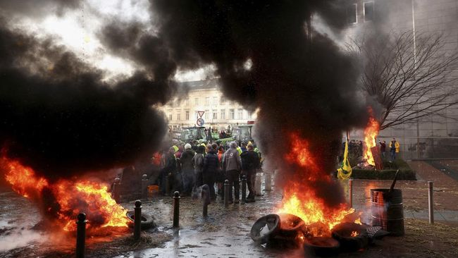 BATAMSTRAITS.COM, Jakarta, — Unjuk rasa para petani di Brussels, Belgia, berlangsung rusuh di tengah KTT Uni Eropa di negara tersebut, Kamis (1/2).