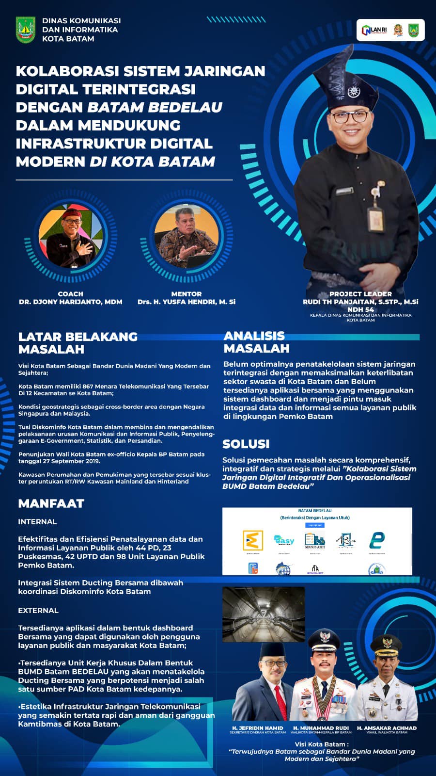 Rudi Panjaitan, sebagai project leader, telah berhasil menyampaikan konsep inovasi digital dan futuristik dengan memimpin terobosan mendasar pada sistem informasi di Kota Batam.