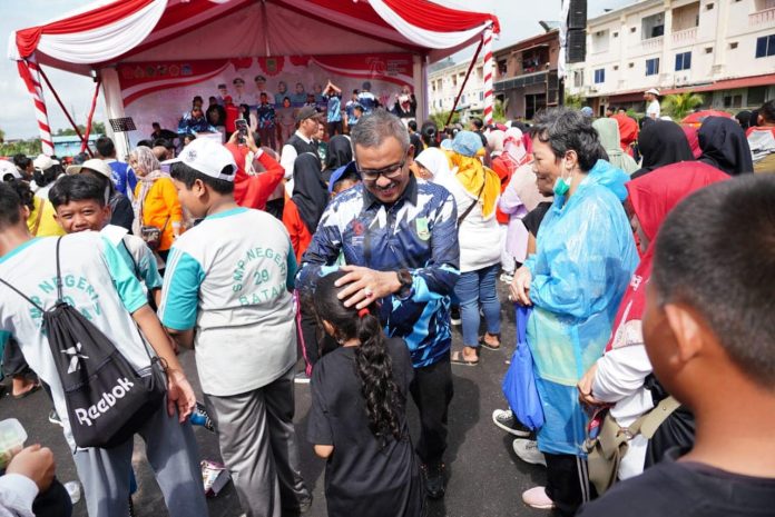 BATAMSTRAITS.COM, BATAM– Hujan tak menyurutkan semangat peserta gerak jalan santai Batu Ampar. Ribuan peserta gerak jalan santai Batuampar dilepas Wali Kota Batam, Muhammad Rudi diwakili Sekretaris Daerah Kota Batam, Jefridin, M.Pd. di Taman Pasific Palace Hotel, Sabtu (14/09/2024).