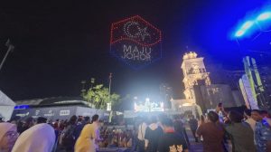 Acara peluncuran memukau para pengunjung melalui pertunjukan formasi drone yang menghiasi langit dengan menampilkan gambus, serta maskot resmi ‘Cuping’ dan ‘Jucy’, termasuk logo kampanye Tahun Melawat Johor 2026.